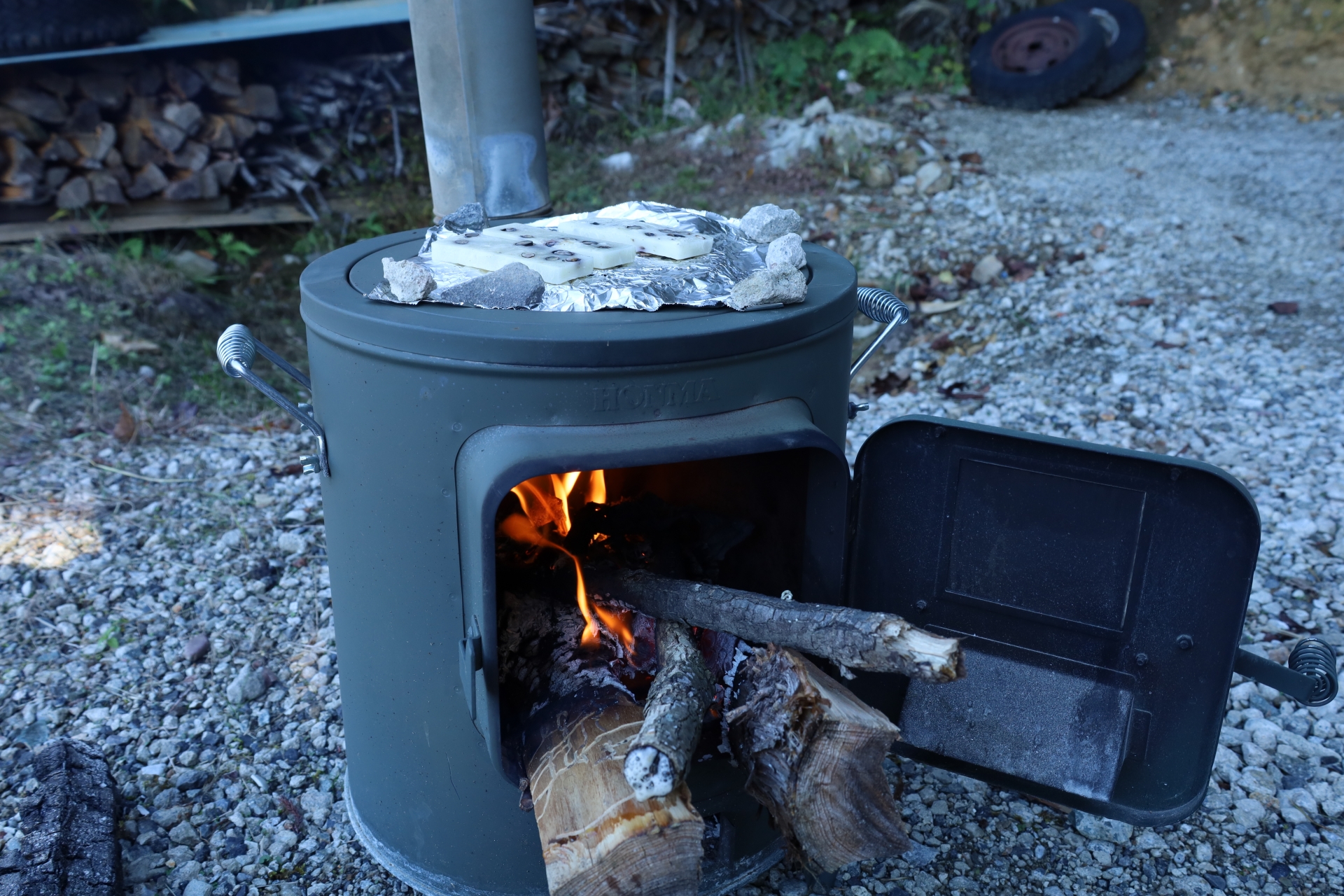 - 焚き火時は燃えにくい素材を選ぶ